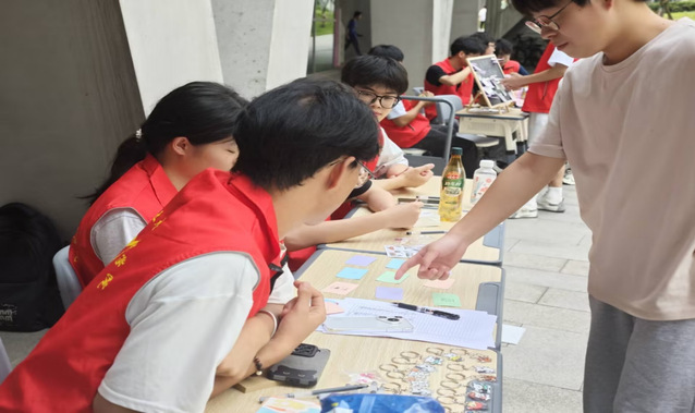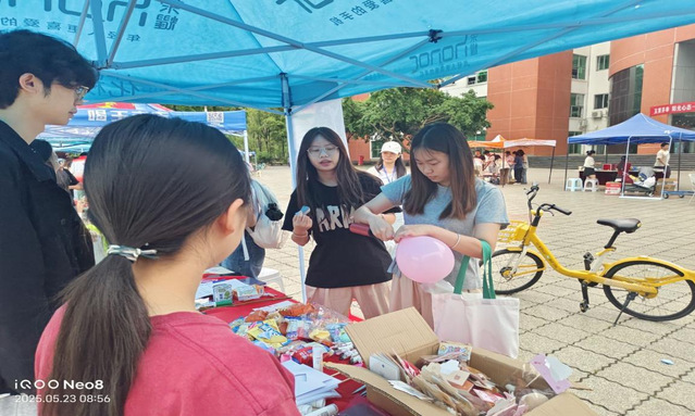 “扎爆烦恼”活动通过充气烦恼球与安全图钉的互动,让参与者将烦恼书写于便签并粘贴至球体,亲手扎破象征释放压力。现场同步设置“多巴胺套圈”与“情绪涂鸦墙”,以套取解压玩具、丙烯绘画等形式多元解压。通过触觉刺激与艺术表达,帮助学生快速宣泄负面情绪。