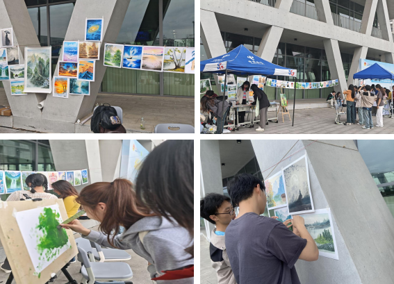 刀画作为非物质文化遗产,以刀代笔、刚柔并济,融合油画质感与传统意境。活动现场,刀画作品展区陈列了很多经典之作,细腻的肌理与磅礴的构图引得师生驻足赞叹。参与者更在耐心指导下体验“以刀为笔,刮刻神韵”的独特技法,在画布上勾勒山石纹理,感受非遗技艺的匠心与创新。