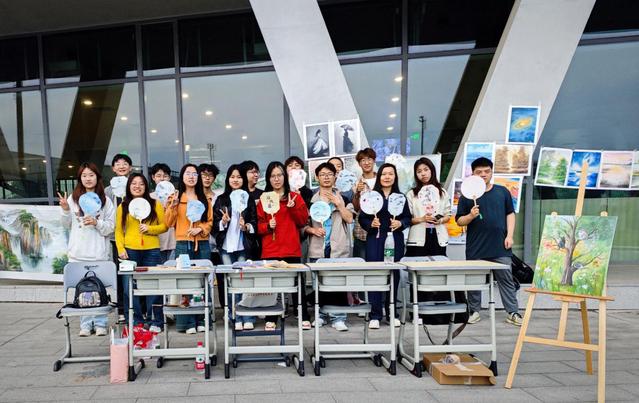 漆扇制作区同样人气高涨。同学们挑选心仪的团扇形状与漆料色彩,以漆为墨、以水为画,在扇面上描绘花鸟鱼虫。一柄柄素扇经巧手点缀,化作斑斓雅致的艺术品,既传递了传统工艺的温婉细腻,也展现了现代青年的审美创造力。“漆扇制作让我体会到东方美学的含蓄与灵动,每一笔都像在和古人对话。”参与同学感慨道,现场还通过推文直播、作品展览等形式扩大影响力,让非遗文化在校园“活”起来。