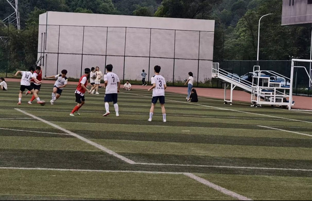 19时,建筑与土木工程学院与管理学院足球代表队展开较量。比赛伊始,管理学院队员凭借角球战术率先破门,上半场结束时我方以0:2陷入绝境。面对开场劣势,建筑与土木学院队员没有气馁,凭借顽强斗志与战术调整,在比赛末段发起绝地反击,最终以2:2的分数扳回比分。双方在攻防两端均表现稳健,门将多次化解险情。当终场哨声划破夜空,两队球员不约而同向对方伸出双手,汗水浸透的球衣在晚风里翻飞,此起彼伏的击掌声与观众的欢呼声交织成一片。赛后双方队员友好致意,充分展现了“以赛促谊”的体育精神 。