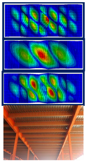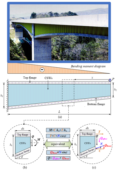 波纹板比平钢管面外抗弯刚度大,可有效提升传统平腹板屈曲能力,并避免焊接过多加劲肋带来的疲劳强度低的问题。利用波纹板受拉时的折叠效应,提出了波纹腹板工字梁整体失稳和局部失稳的计算和设计方法;补充了高强度钢波纹腹板梁的设计理论,为波纹腹板梁的工程应用提供了重要的设计方法。为了提高波纹腹板工字梁的整体稳定性,提出了钢管翼缘和钢管混凝土翼缘替代平钢板翼缘的方法,通过钢管的闭口截面改善梁整体抗扭转能力,从而极大地提升了梁整体失稳的临界荷载。将波纹腹板和钢管翼缘结合形成了一种新型的钢管翼缘-波纹腹板组合工字梁,显著改善了梁的静力承载能力和疲劳强度,并提出了变截面组合梁性能的分析方法。