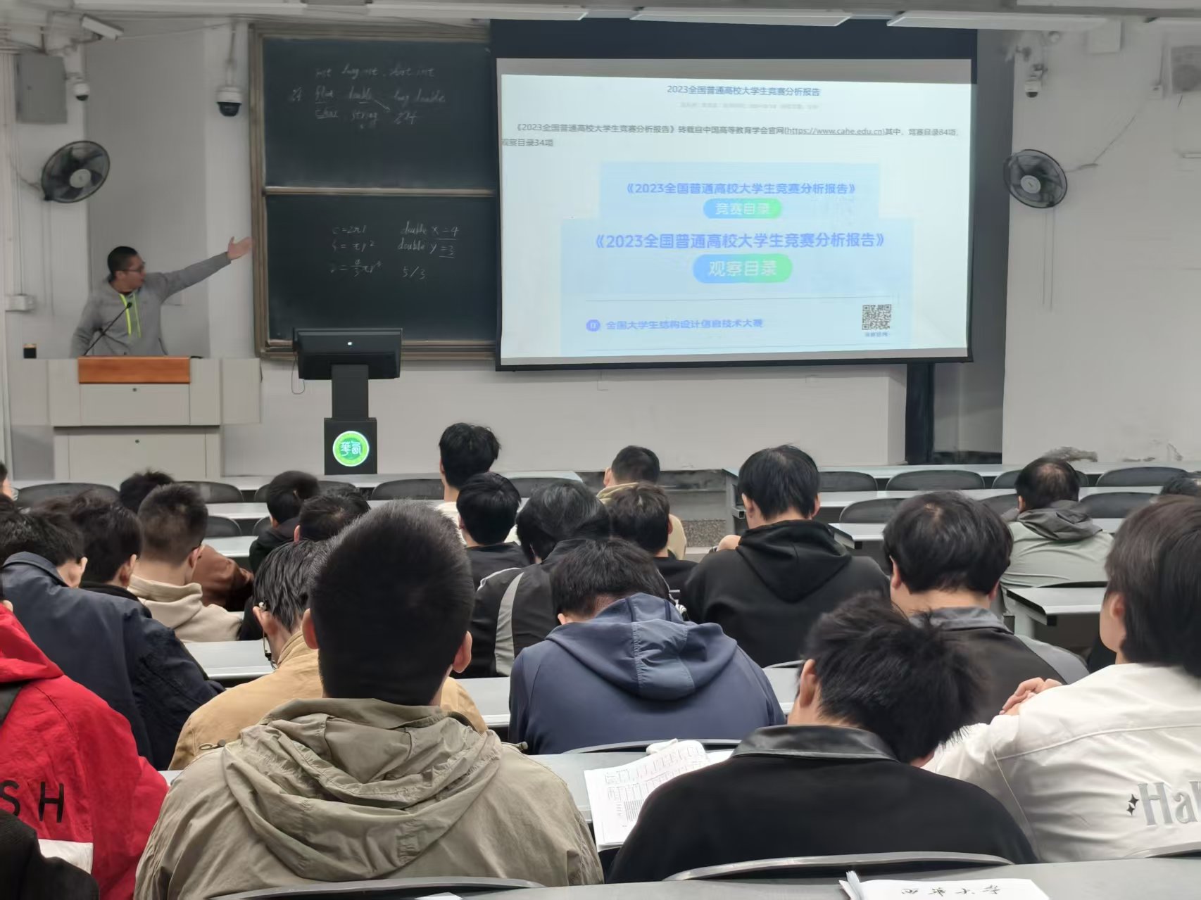 会上,徐咏对该赛事的发展过程进行了大致介绍,并重点介绍了西华大学历年来参加该赛事并取得成绩的情况;对该赛事的主题内容进行讲解,并重点说明了该赛事涉及到的专业课程;对赛事的报名要求进行了解读,并邀请学生积极参与该项赛事。经上述宣讲,同学们跃跃欲试,目前共有16组团队共48名同学报名参加该赛事。因该赛事要求一个学校最多只能12支队伍参加比赛,故后续负责人将会通过建筑与土木工程学院“未来结构协会”对所有拟参赛队伍进行筛选,最终优选出12支队伍正式参加“第八届全国大学生结构设计信息技术大赛”。