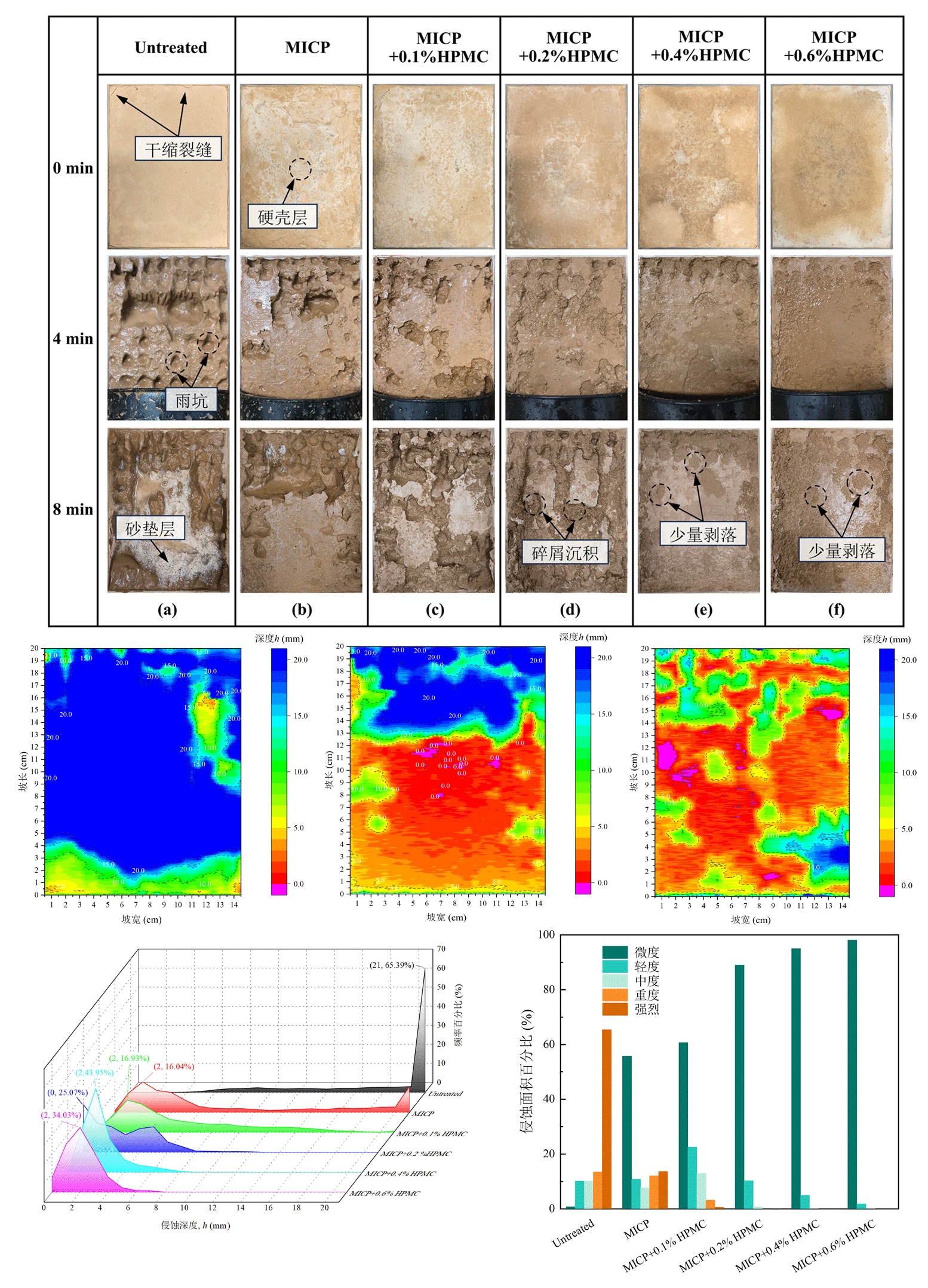 (2)MICP协同HPMC改良黄土的抗降雨侵蚀能力
