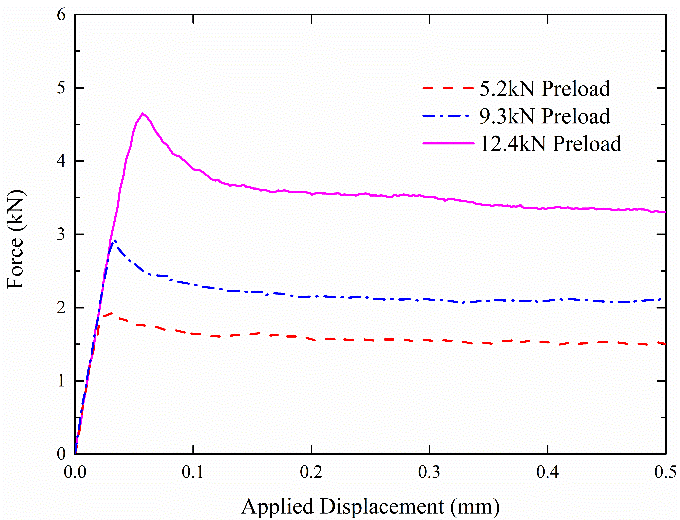 螺栓连接准静态切向拉伸测试显示,预紧力对连接界面切向承载性能退化具有重要影响,高预紧力-切向交变载荷协同作用下磨损破坏程度显著增加,进而造成宏观滑移力的显著降低;提出的无量纲归一化损伤因子模型可准确揭示延性金属材料界面损伤破坏模式。