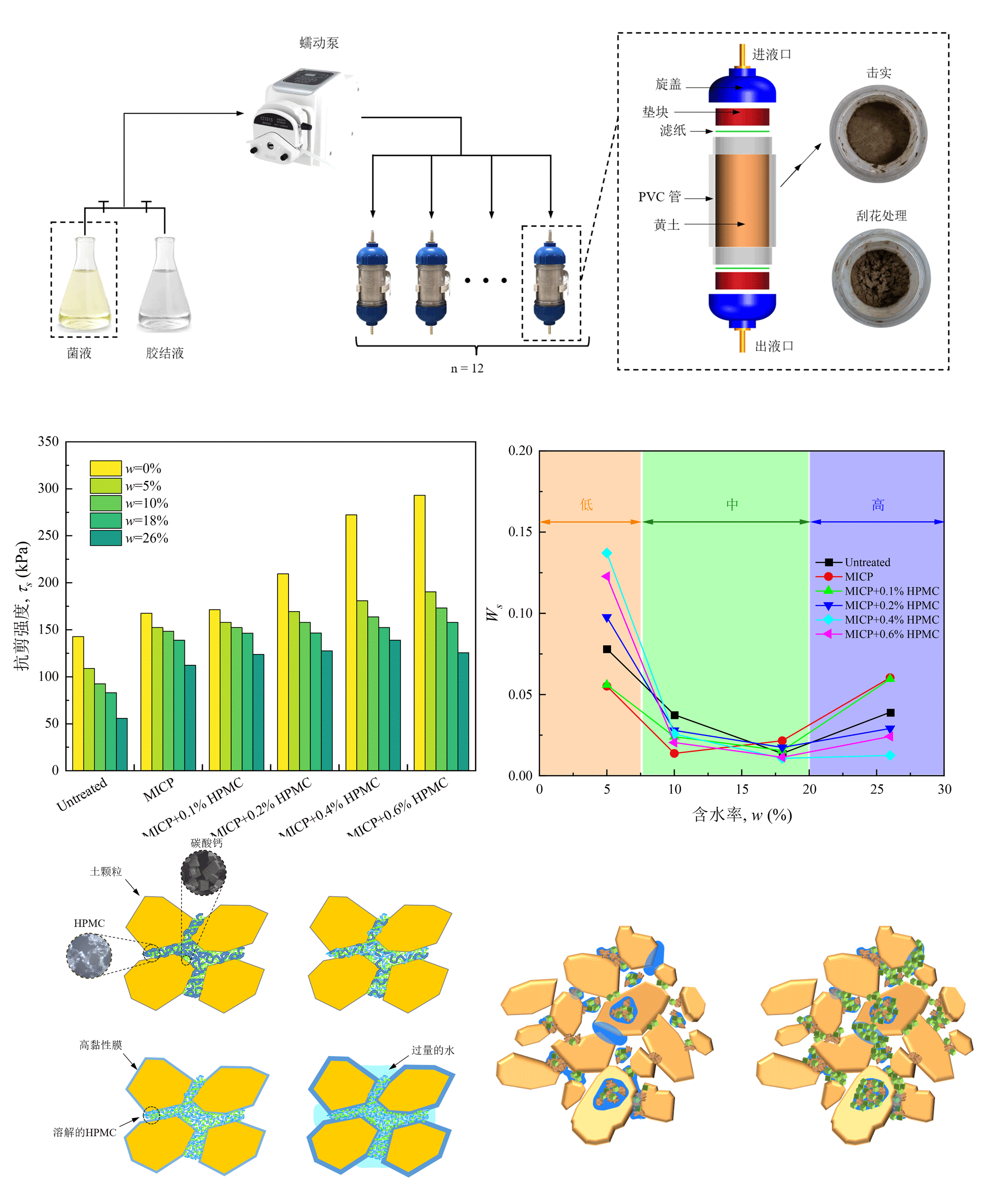 MICP协同HPMC对黄土强度和水稳定性的改善机制