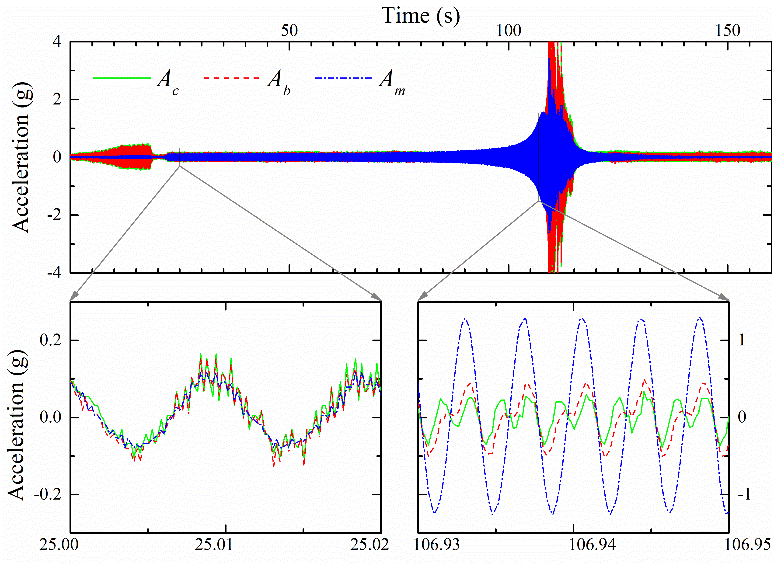 针对计算机视觉系统在结构位移监测中存在分辨率不足、采样频率有限及标定复杂的问题,根据同一测点加速度和位移的时频关联机制,提出由二者重建位移的互补滤波融合方法,并讨论了重建过程滤波器参数的影响,获得了相比视觉位移高精度、宽频域、低噪声的融合位移;提出由视觉位移和加速度重建位移带通滤波后的同频响应分量自动拟合测点比例因子的方法,推导出比例因子随像素坐标的变化关系,实现了全域视觉位移的自动标定。进一步,以加速度和位移的时频关联机制为物理约束,实现了基于物理信息神经网络的测点位移重构方法。