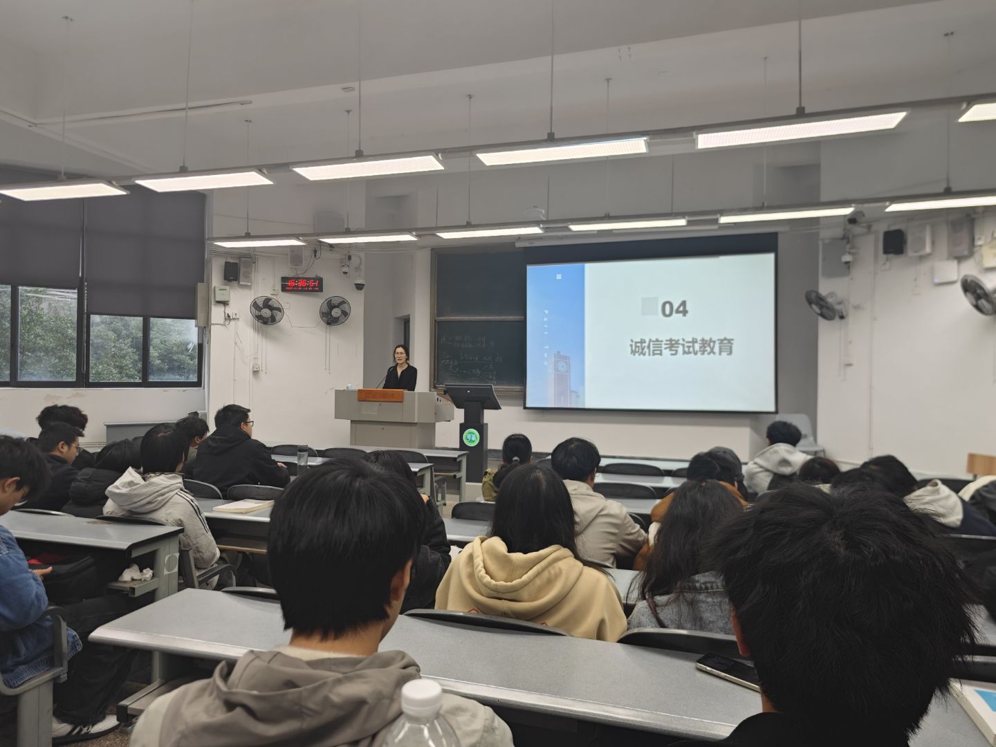 期末考试季即将来临,为进一步促进学风建设,防止发生考试不诚信行为,2025年11月,2023级工程造价、建筑学、风景园林三个专业在6B201、6C402、6B102开展诚信教育主题班会,全体学生参加。主题班会中,辅导员杨翠向学生们讲解了学生手册中有关考试作弊的相关条例,要求同学们严格遵守考试纪律,杜绝作弊行为的发生。