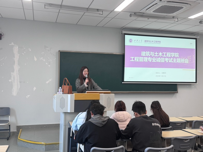 为进一步加强学风建设,引导学生树立诚信考试意识,摒弃作弊行为,营造公平公正的考试氛围。2025年11月21日,建筑与土木工程学院2024级工程管理专业在宜宾校区2A411召开“诚信应考,不负韶华”主题班会。