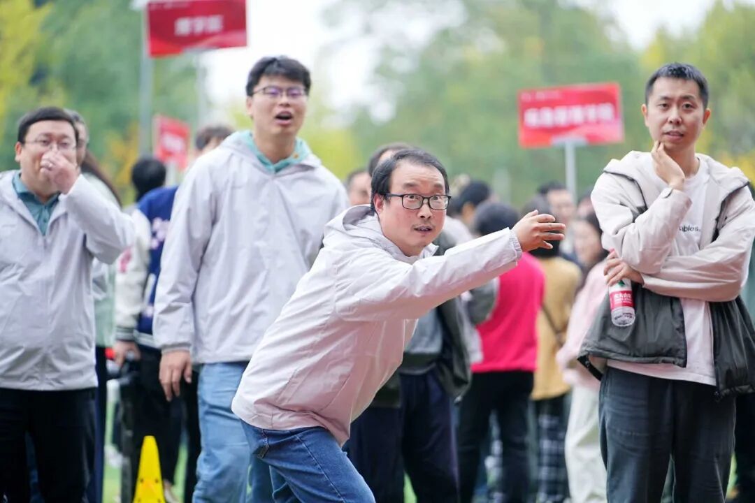 “欢乐飞盘”项目中,老师们彻底释放了活力。大家轮流投掷,有人投出漂亮弧线命中目标,队友们立刻欢呼击掌;有人投掷稍偏,立刻有人喊“没事,下一个更准”。飞盘在空中划出的轨迹,连接起一张张笑脸,轻松的互动里,是同事间情谊的悄然升温。
