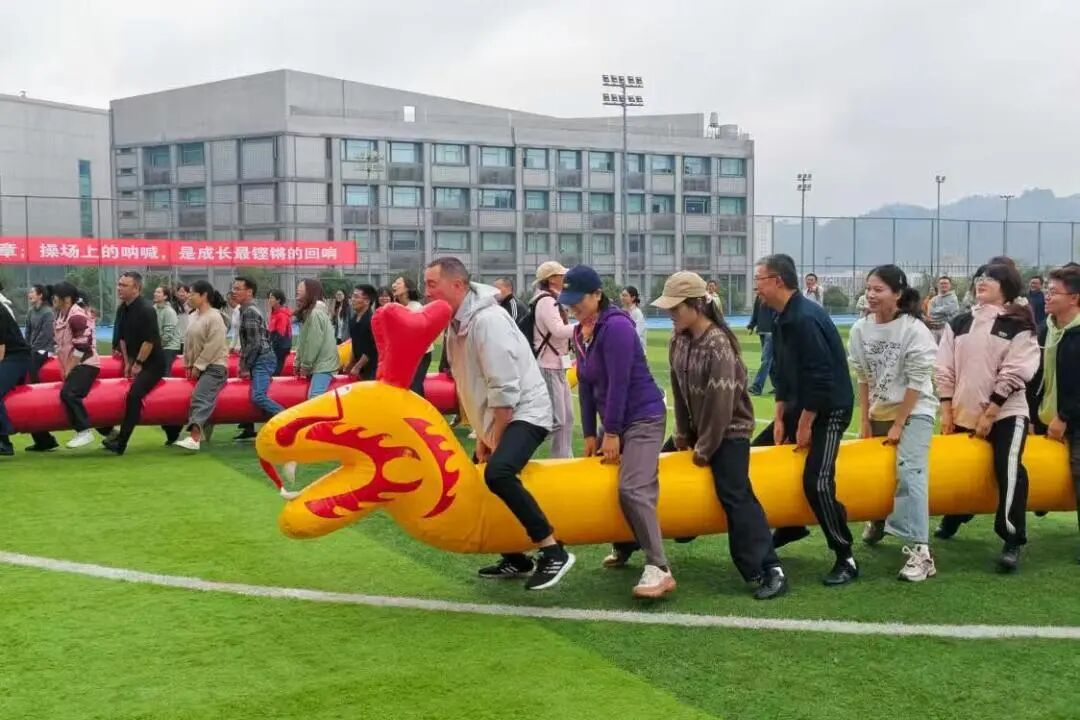 “金龙钻圈”项目充满了动感与挑战。教职工们化身“金龙”,在圈阵中灵活穿梭,彼此配合、相互支持,每一次成功钻圈都是对团队协调性的完美诠释。赛场上,身影跃动,笑声飞扬,大家在钻圈的乐趣中,尽情释放活力。