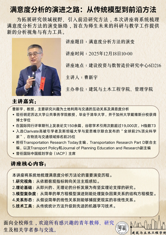 讲座地点:建设投资与数智造价研究中心6D216