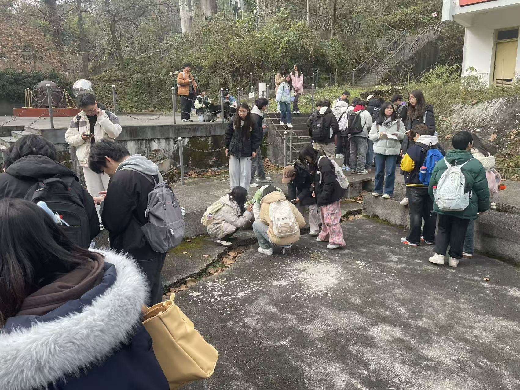 2025年12月14日,建筑与土木工程学院道路与桥梁工程系王星、许芃、鲁会军老师带领2024级土木工程本科生赴四川省彭州市小鱼洞地质遗迹保护区开展生动的野外地质实习教学活动。此次实践旨在通过“课堂理论+野外实测”的深度融合,培养学生在地质调查中的基本操作技能,提升其在复杂工程环境下分析与解决地质问题的综合素养。全体2024级土木工程本科生参加了本次活动。