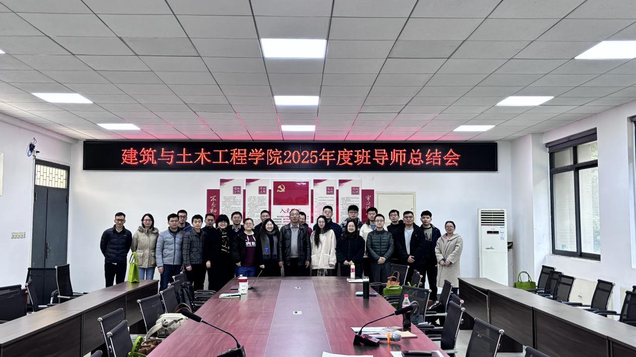 为全面复盘 2025 年度班导师工作成效,凝聚育人共识,明确发展方向,进一步提升学院育人工作质量。2026 年1月5日,建筑与土木工程学院在6D--211召开 2025 年度班导师工作总结会。学院党委书记舒志乐、班导师代表和辅导员老师参加会议。