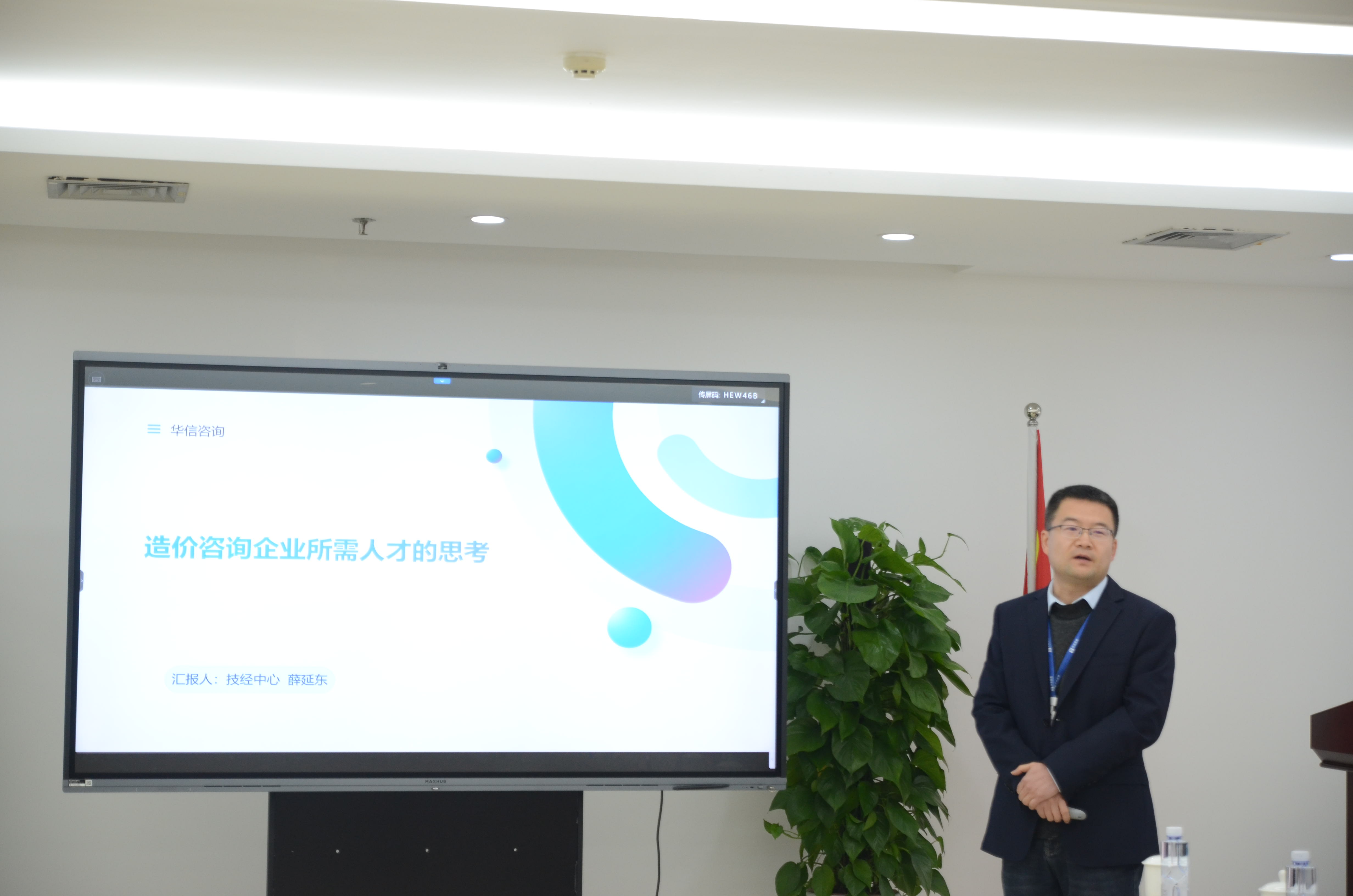 华信众恒技术与经济研究中心总监薛延东围绕“咨询公司所需人才的思考”作专题分享。他结合工程造价行业发展趋势、公司业务布局,紧扣西华大学工程造价专业人才培养方案,聚焦复合型人才画像构建展开深入阐述,提出愿与高校携手,针对性优化人才培养路径,打通人才供给与需求的“最后一公里”,助力高校培养更贴合行业需求的优质人才。