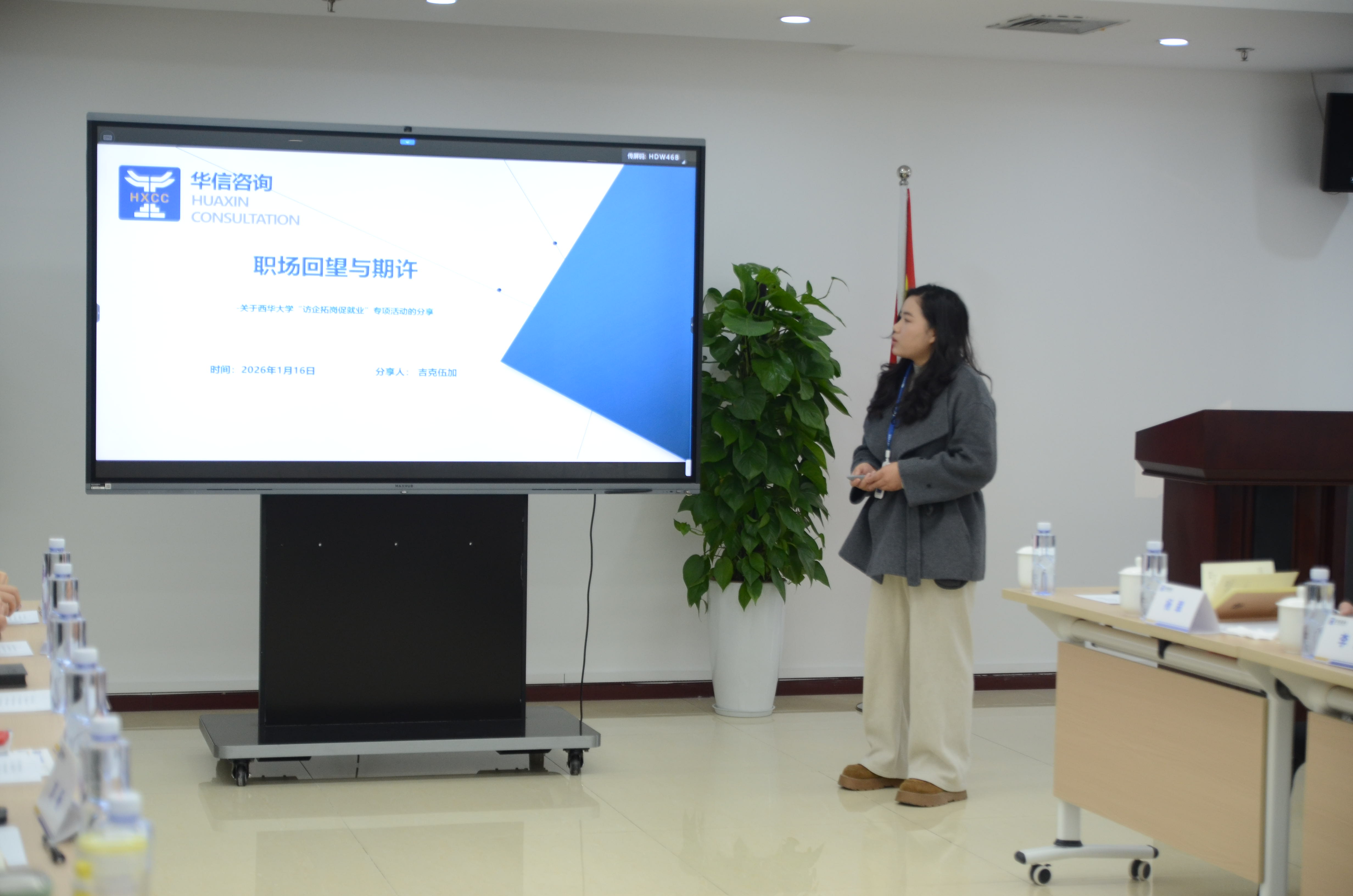 会议由华信众恒副总经理白海川主持,议程紧凑、重点突出。座谈伊始,双方分别介绍参会人员,增进彼此了解。随后,华信众恒成都片区咨询八部造价员吉克伍加作为西华大学校友员工代表发言。她结合自身在母校的求学经历与入职后的职业成长轨迹,分享了从校园学子到职场从业者的角色转变心得,感恩学院的悉心培育为其职业发展筑牢根基。同时,她立足一线工作实际,就学院课程设置、实践教学优化等方面提出中肯建议,其真挚分享展现了西华学子扎实的专业素养。
