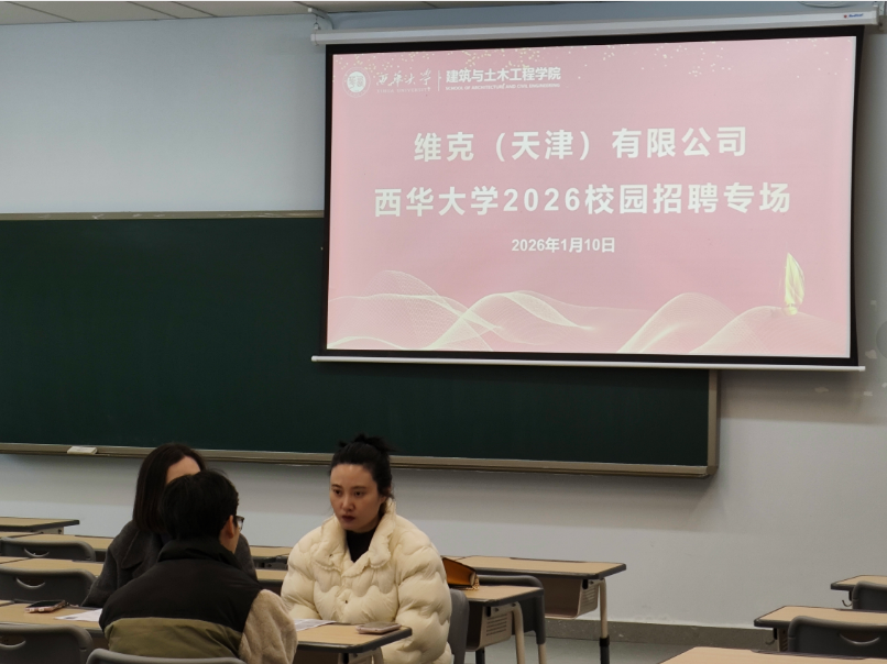 近日,维克(天津)有限公司(以下简称“维克空调”)西南大区负责人袁丁与川南地区经理唐经凤一行两人,利用周末时间莅临我校,针对建筑环境与能源应用工程专业(以下简称“建环”)开展定向人才招聘面试。此次招聘源于前期校企双方的精准沟通,学校针对性推荐学生简历,全程简洁高效,务实开展校企合作对接。