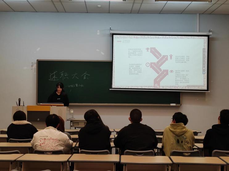 会上,班委们依次上台,通过PPT展示与演讲相结合的方式,围绕大一上学期工作开展情况、取得的成绩、存在的不足及未来规划等方面进行了全面细致的汇报。其中,班长胡斌宇提出了新学期班级建设任务及目标,主要创新点有:提升团日活动的趣味性、开展团建活动、制定班级公约以及设立班级意见箱等形式,也为了营造更积极、愉快的班级氛围。班委们用详细的数据和生动的案例,分享了工作中的收获与感悟,并对同学们的支持与配合表示了感谢。