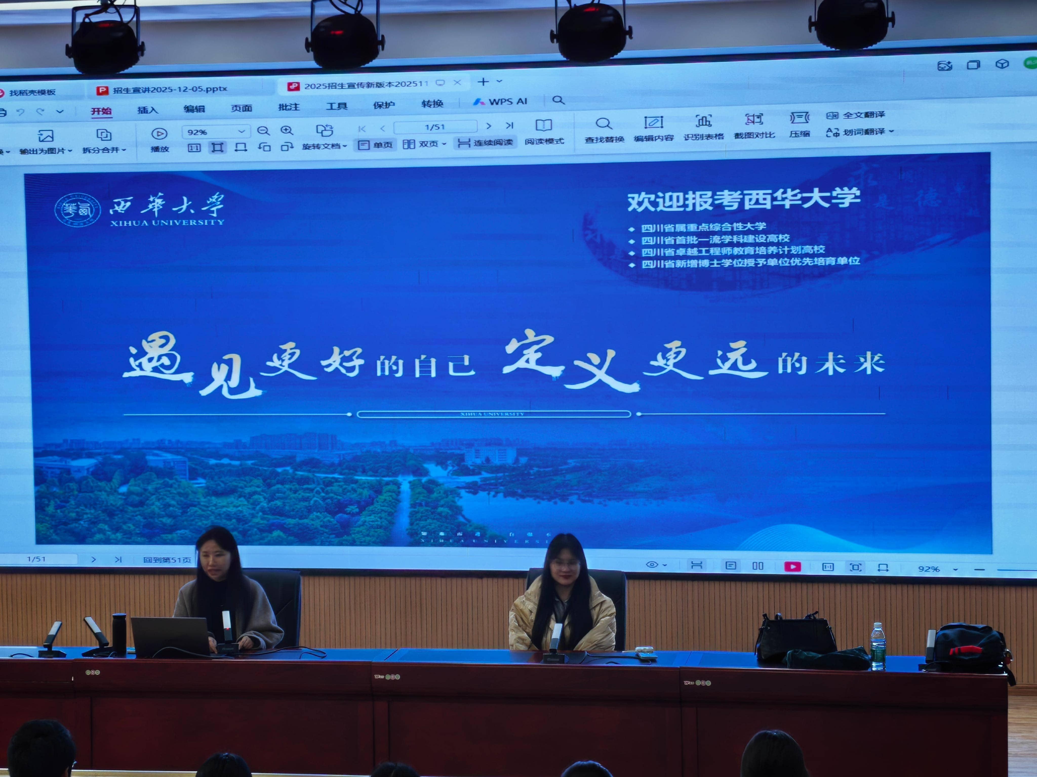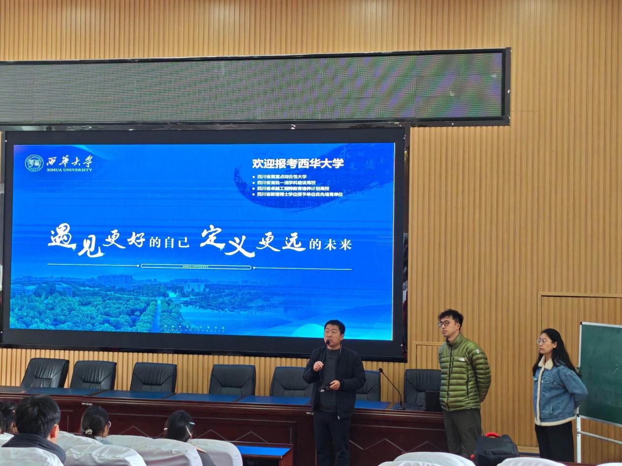 各中学的宣讲会上,辅导员岳敏行和巴冬晴老师首先介绍了西华大学的悠久历史和深厚文化底蕴,展示了近年来学校在学科建设、师资力量、人才培养、科研成果等方面取得的显著成就。还分享了西华大学丰富多彩的校园生活和广阔的发展平台,鼓励同学们积极报考西华大学,在这片充满活力的热土上追逐梦想,成长成才。
