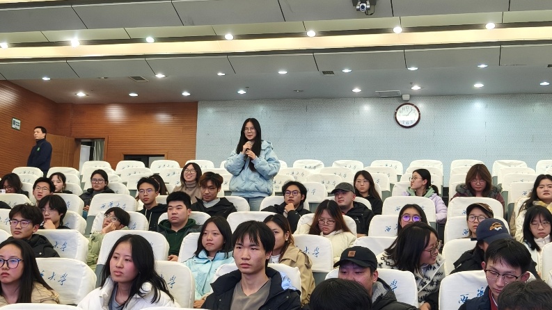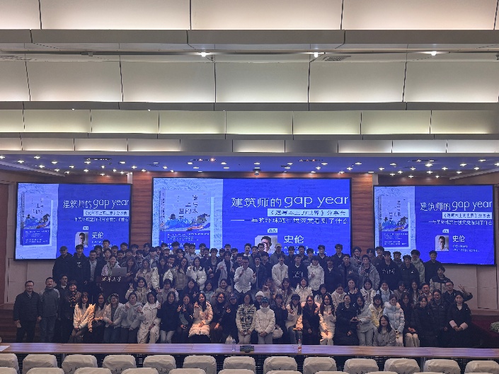 互动交流环节氛围热烈。同学们围绕“对建筑的认识”、“设计课程作业难点突破”、“旅行途中的挑战与应对”等问题踊跃提问,史伦学长结合自身求学、从业及环球旅行的丰富经历,为学弟学妹们给出了务实中肯且饱含鼓励的解答,鼓励大家勇于探索、坚定前行。许康老师在互动中盛赞史伦身上兼具的“孝道与坚守”,寄语同学们珍惜青春时光,读万卷书,行万里路。翁少彬老师结合史伦以速写记录、以思考沉淀的经历,希望同学们能将这种方法融入专业学习,在积累中提升设计素养与创新能力。