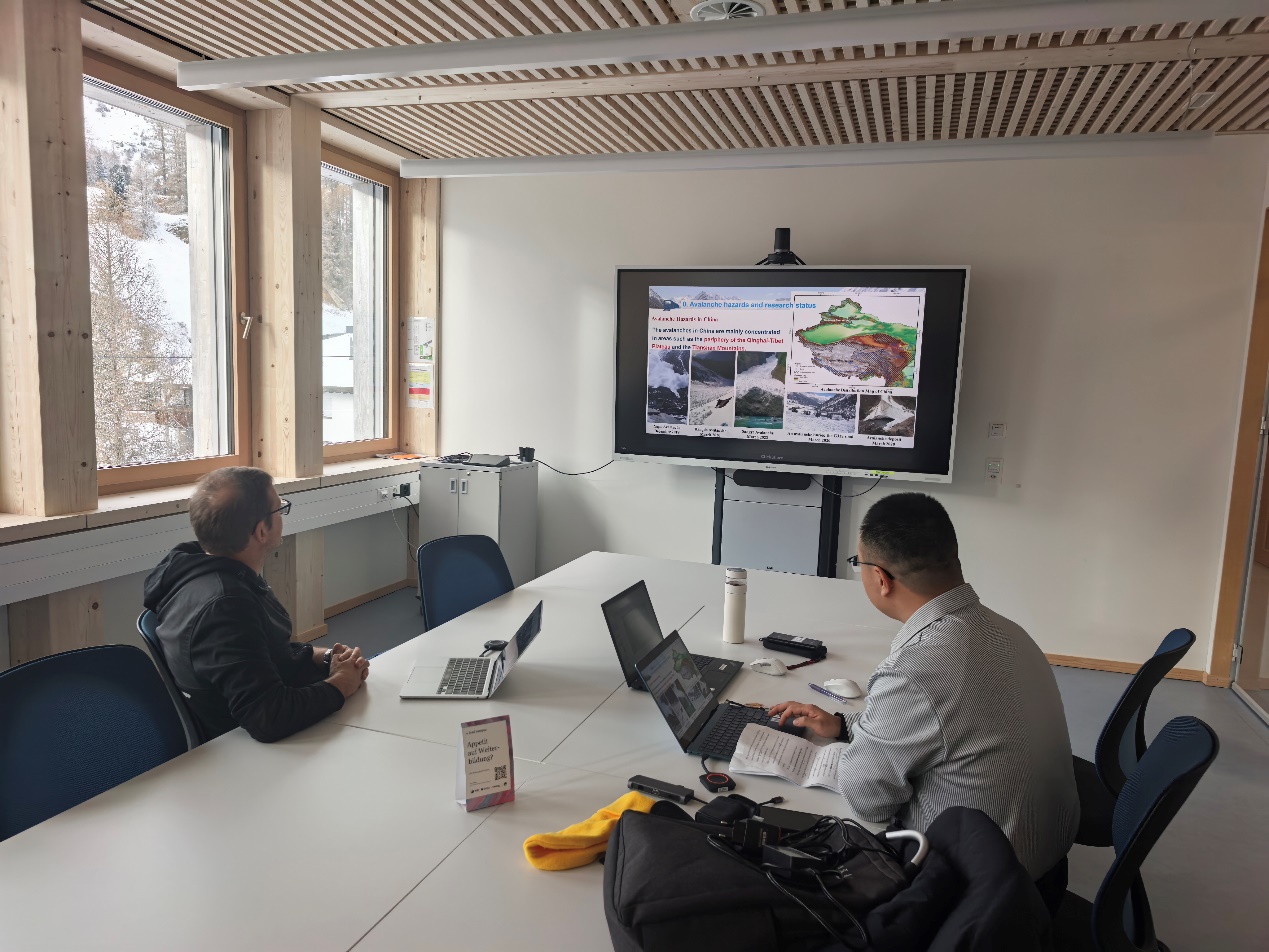 图1 与Yves Bühler研究员交流中国藏东南雪崩时空演化机制