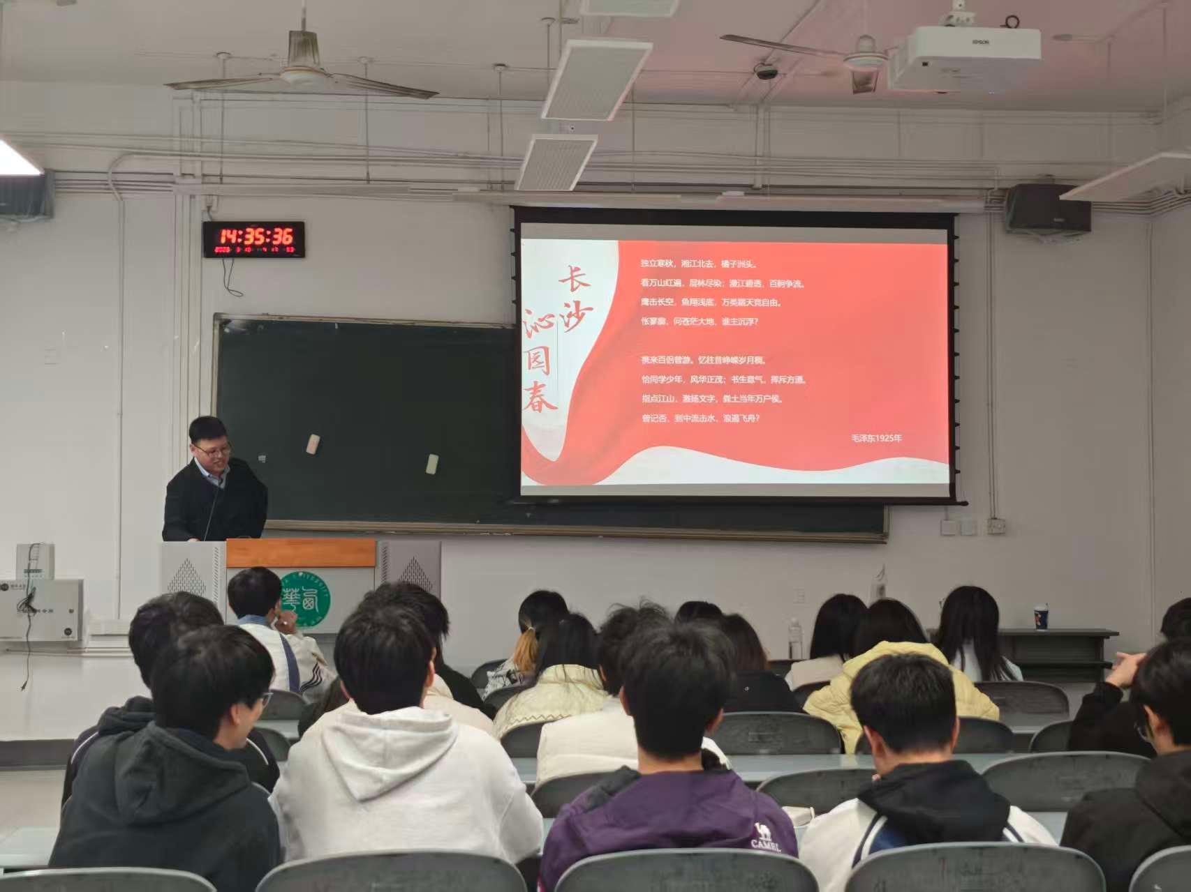 2026年3月19日,2023级建筑学专业在6C123举办“班导师说”思政分享会。郑昊老师、熊天翼老师开讲,以青年毛泽东求学经历为脉络,结合《红星照耀中国》红色经典,跨越时空对比两代大学生的使命与担当,为学子拨开迷雾、指引方向。