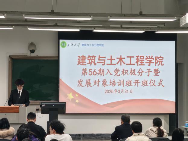 2026年3月31日,西华大学建筑与土木工程学院第56期党校培训班开班仪式在第六教学楼6B-203顺利举行。学院党委书记舒志乐、党委副书记王凤、专职组织员倪和平、各学生支部书记、辅导员及全体参训学员参加仪式,仪式由培训班副班长梁城玮主持。