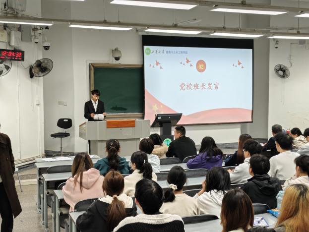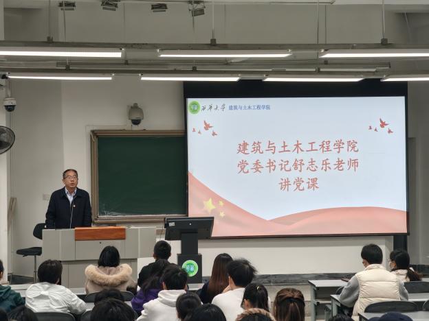 开班仪式结束后,学院党委书记舒志乐为全体学员讲授“淬炼党性修养·砥砺青春担当”主题党课。舒书记围绕土木工程行业发展趋势、研究生复试等热点内容进行了讲解,他以自己的所见所闻,为同学们明确方向,鼓励同学们要坚定理想信念,将个人奋斗融入国家发展的大局之中,增长见识,培养奋斗精神,增强综合素质;并在讲解期间中对学员提出四点要求与希望,为学员们后续的学习与实践奠定了坚实的基础。
