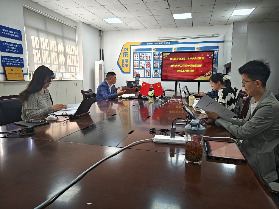 2026年4月9日(星期四)上午10时,西华大学建筑与土木工程学院工程造价系在6C207会议室召开数智造价建设工作推进会。大匠通公司汤明松汤总应邀出席,项目牵头人、系主任肖光朋,副主任王绮,以及青年教师赵煊、王立、张倚浩等参加会议。