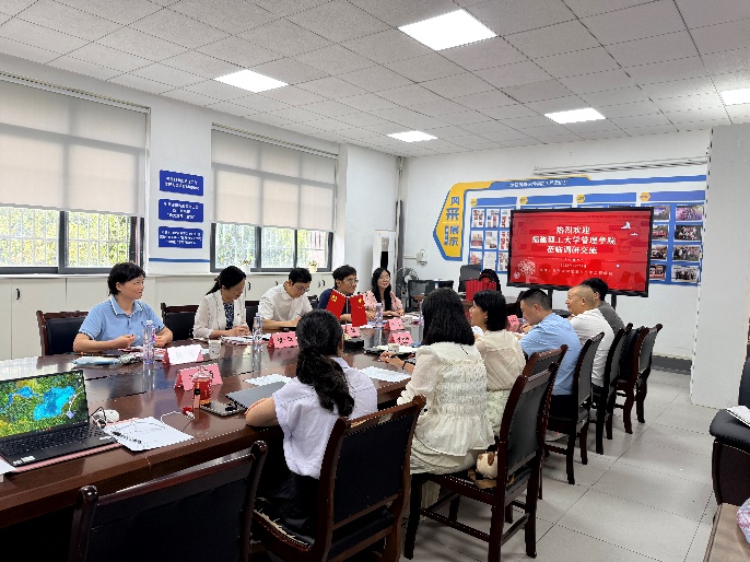 2025年9月25日下午,福建理工大学管理学院党委书记赵健、工程造价专业负责人李杰教授等一行来我院开展专题调研交流,土木学院副院长李海凌教授、工程造价系主任肖光朋、副主任王绮等相关人员参加座谈会。此次调研旨在深入探讨工程造价系在专业建设、课程改革与数智化转型方面的先进经验,推动专业高质量发展。